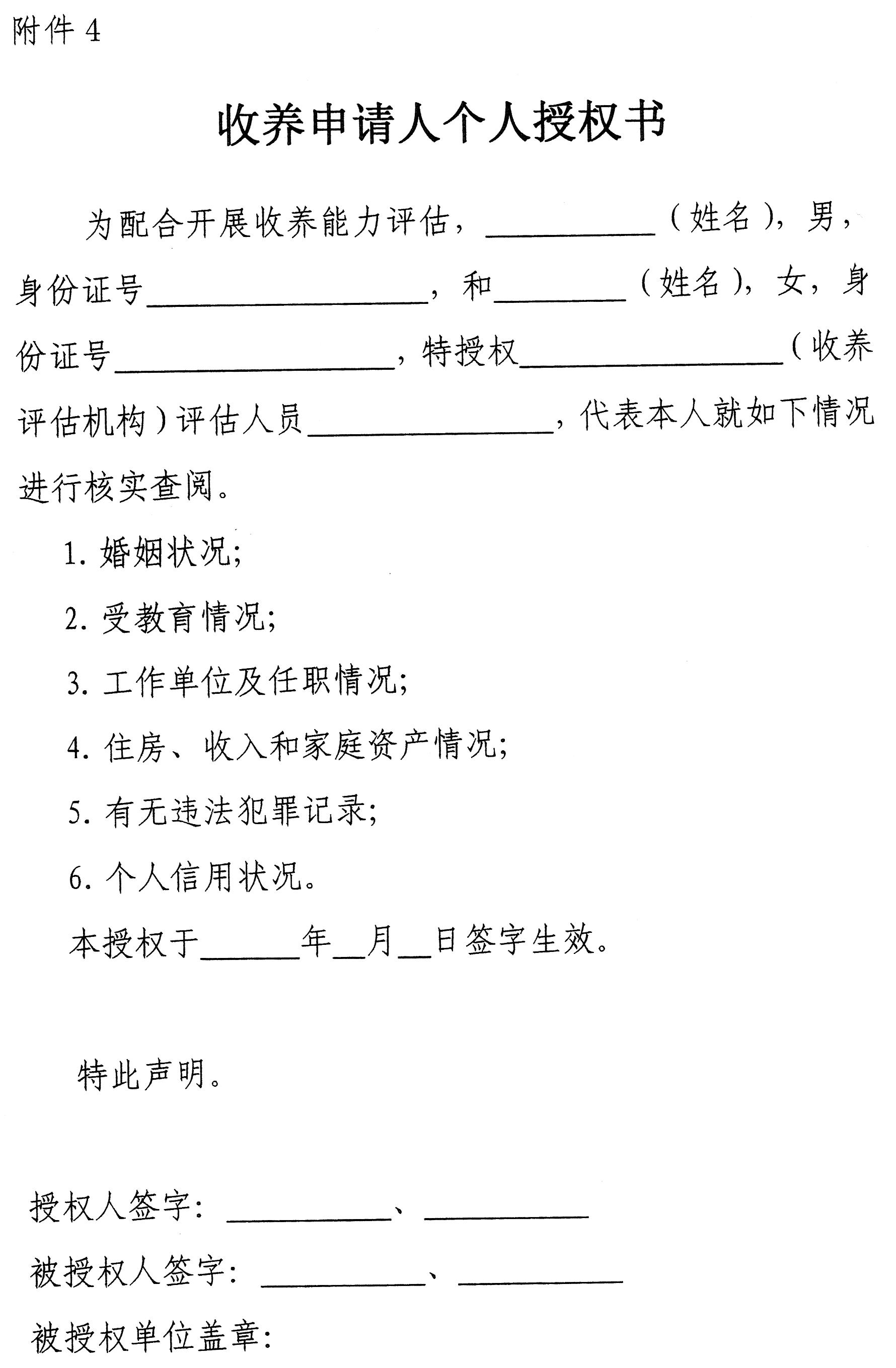 4.收养申请人个人授权书