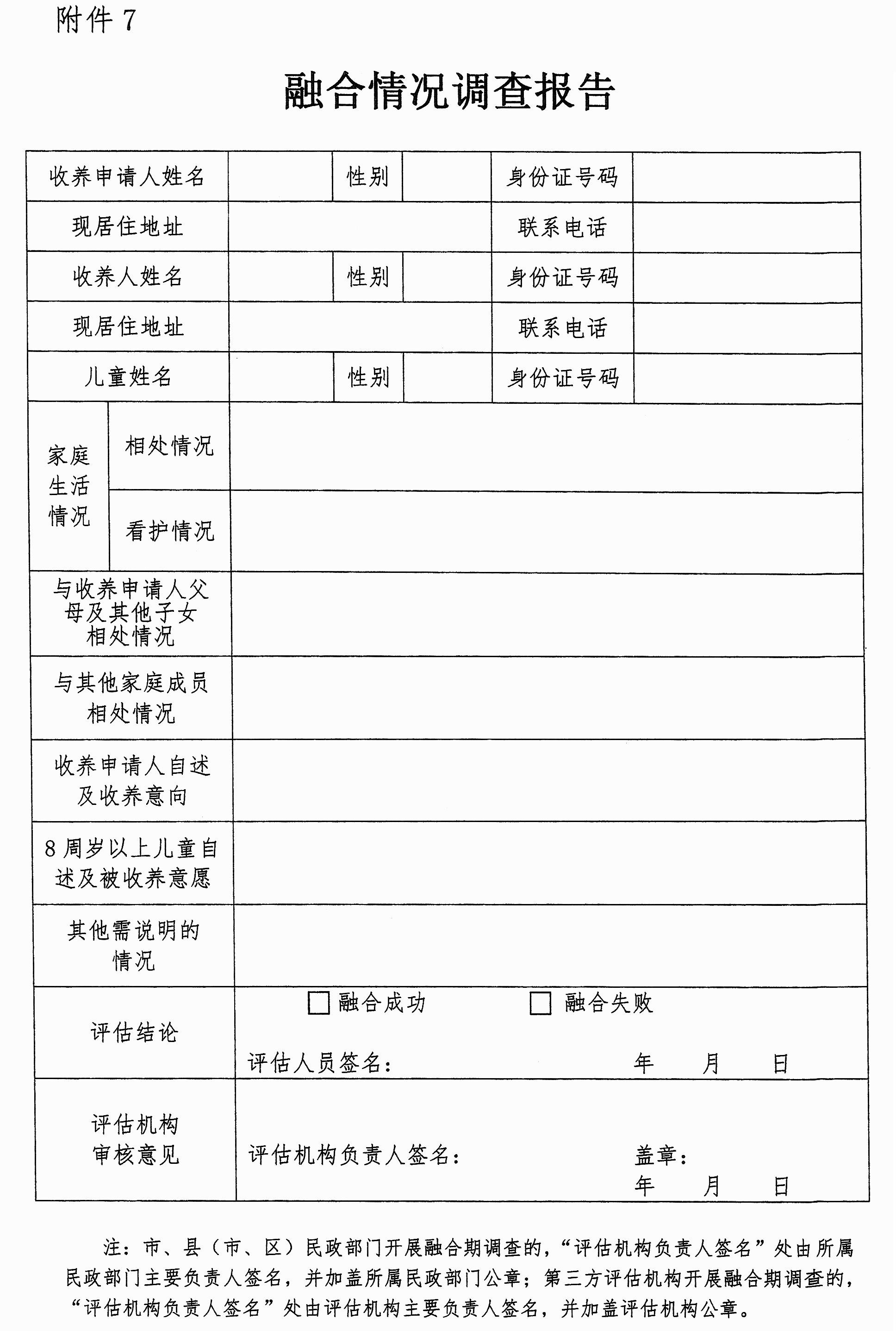 第十七条 融合期内,评估人员应当至少开展一次融合情况调查,并形成《融合情况调查报告》(附件7)。