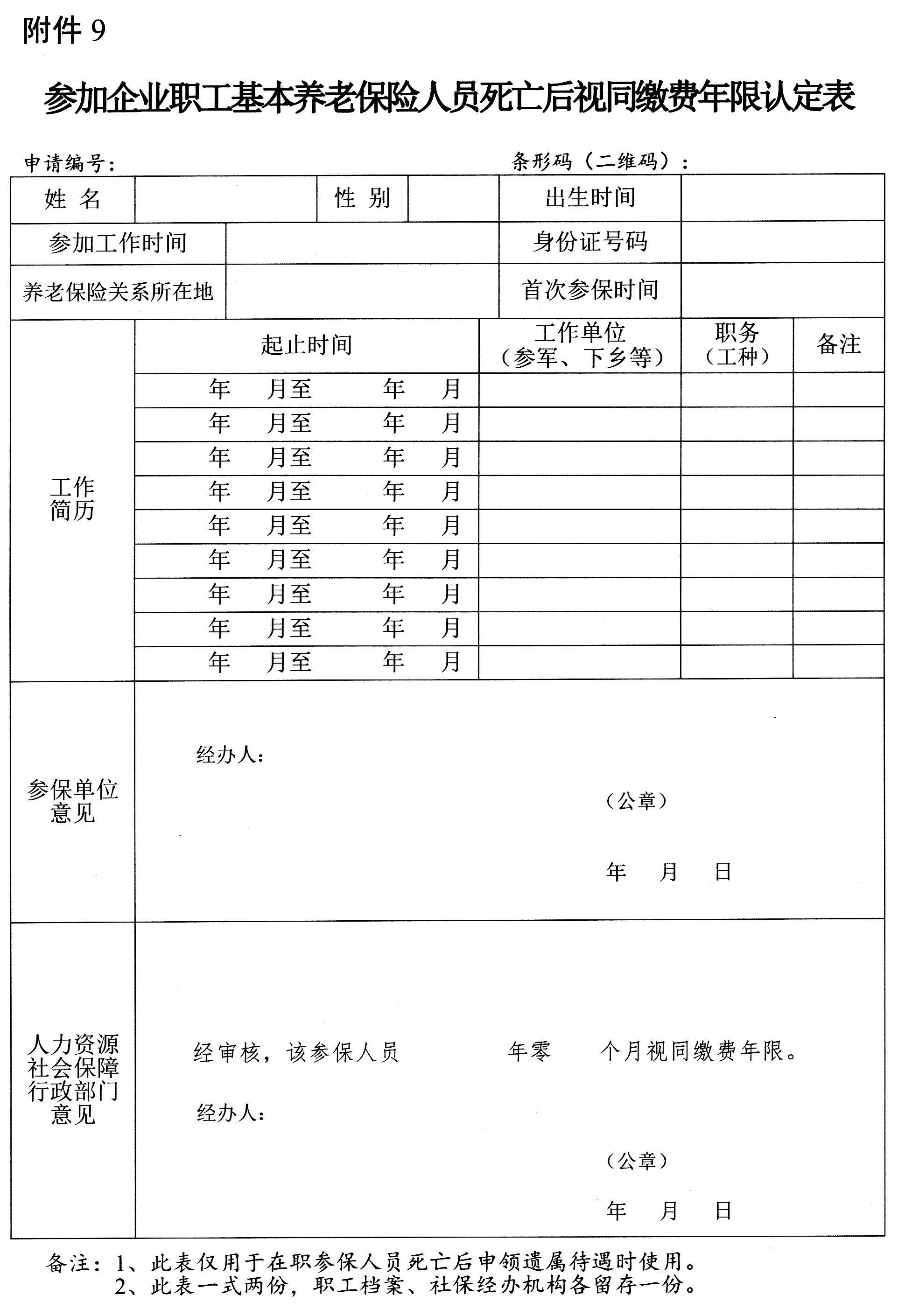 9.参加企业职工基本养老保险人员去世后视同缴费年限认定表