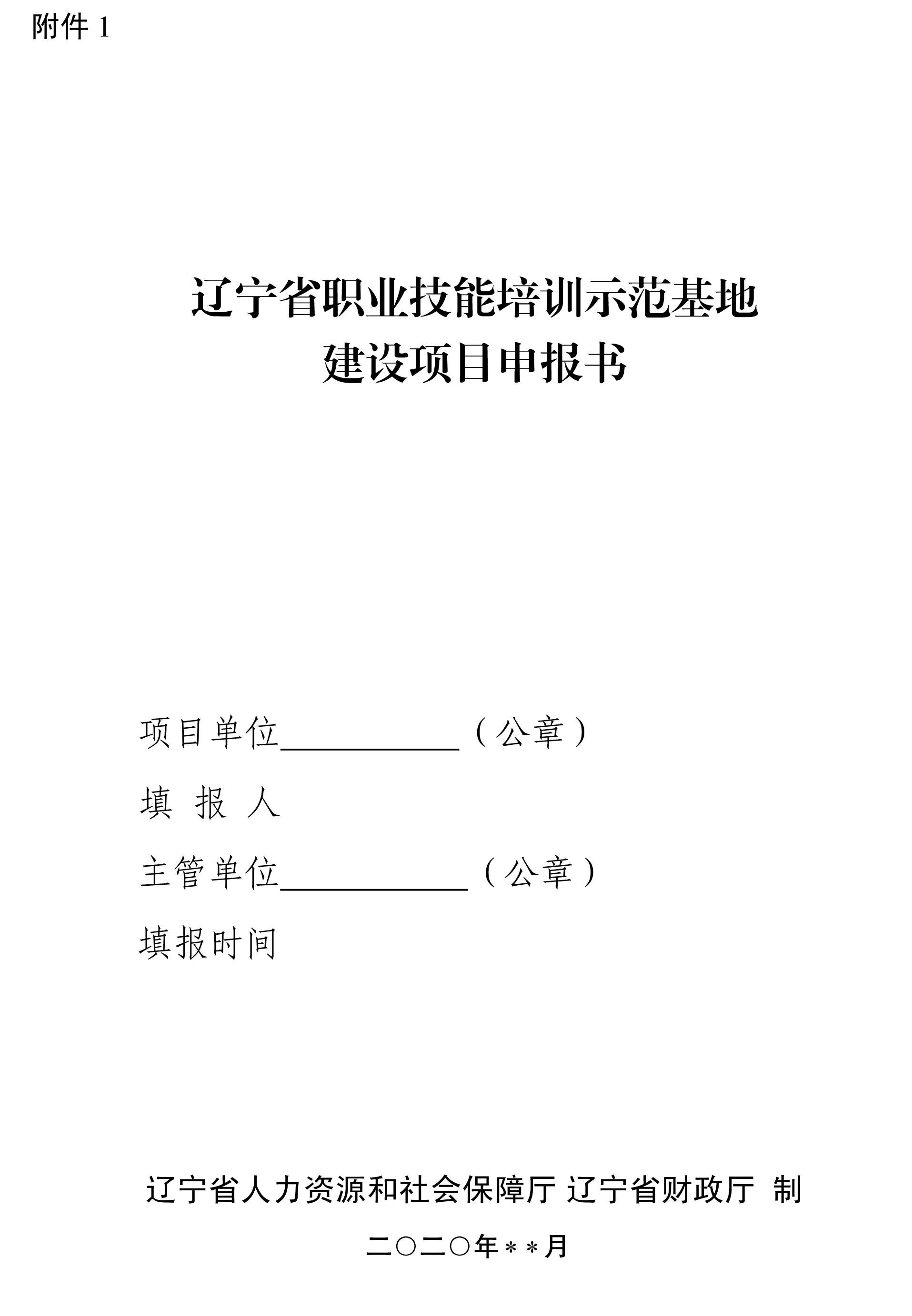 附件:1.《辽宁省职业技能培训示范基地建设项目申报书》(样本)