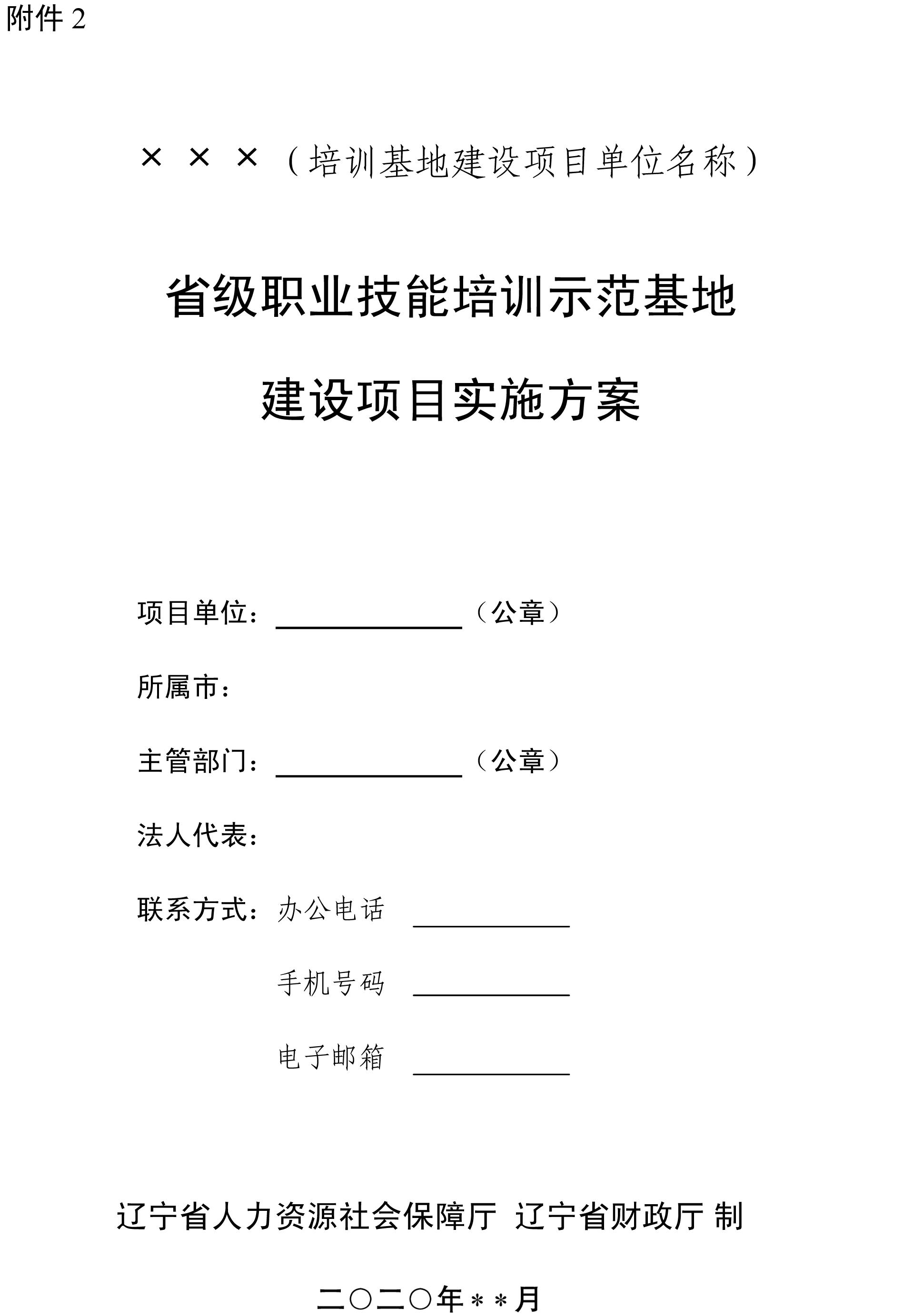 2.《×××(培训基地建设项目单位名称)省级职业技能培训示范基地建设项目实施方案》(样本)