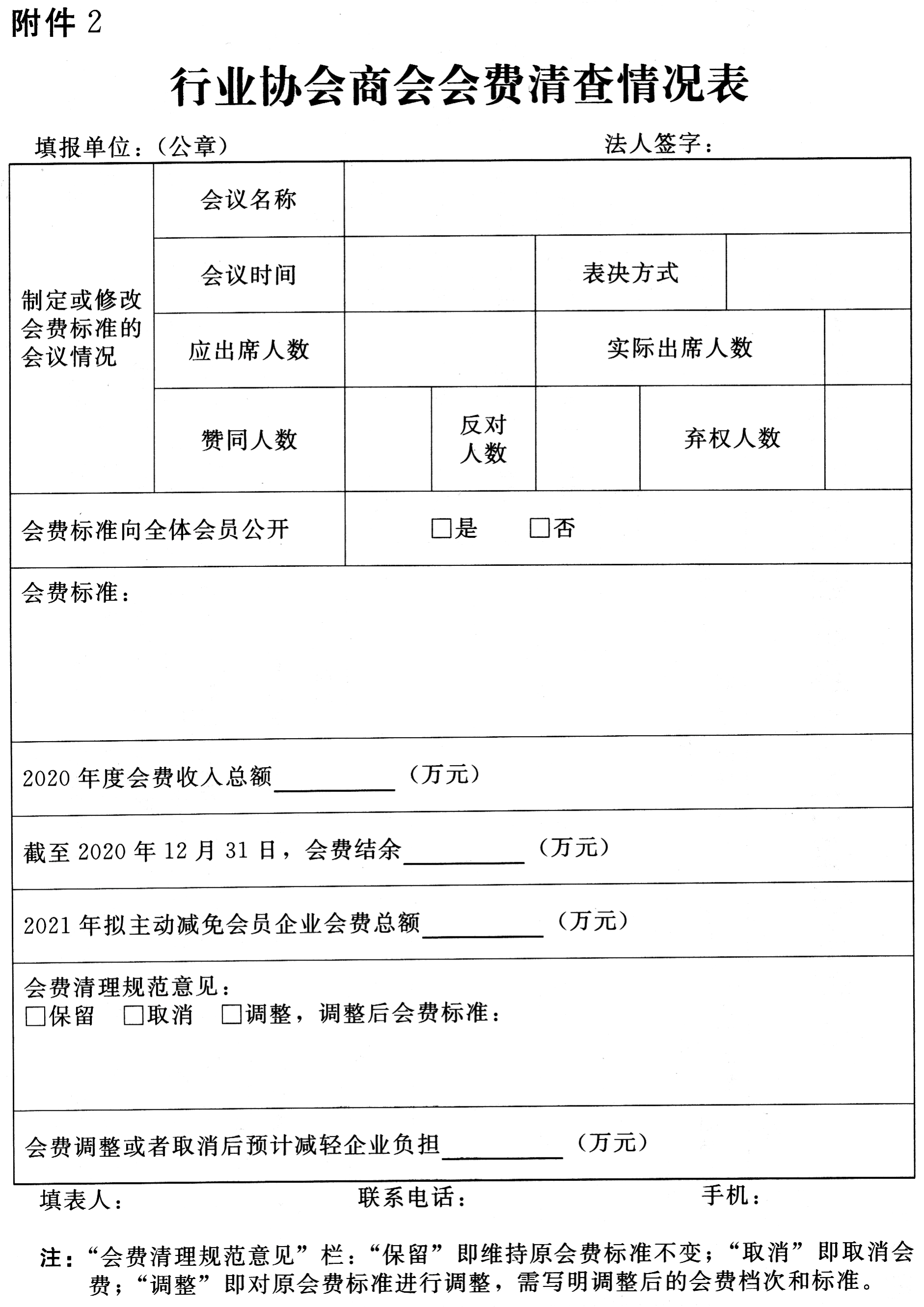 2.行业协会商会会费清查情况表