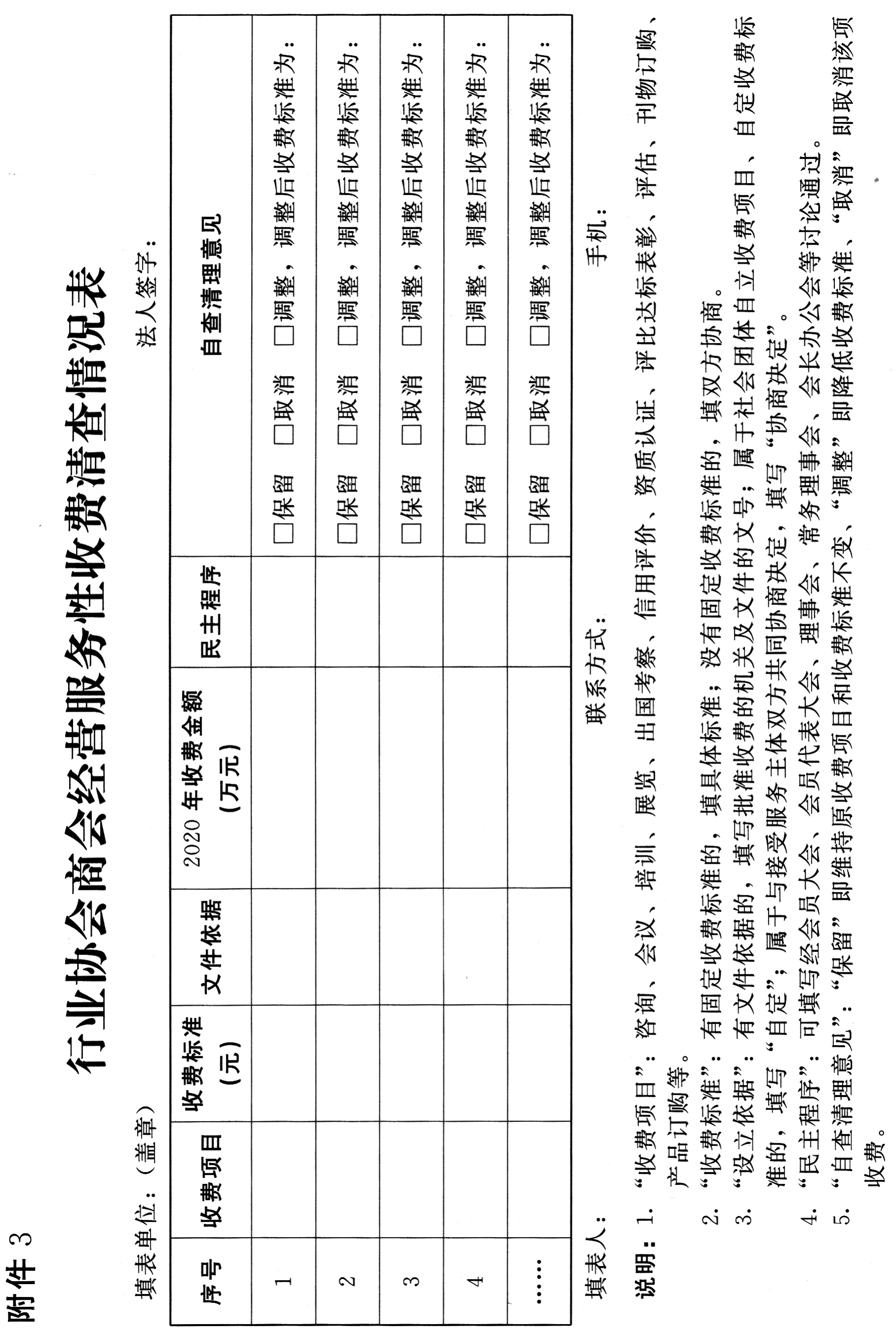 3.行业协会商会经营服务性收费清查情况表
