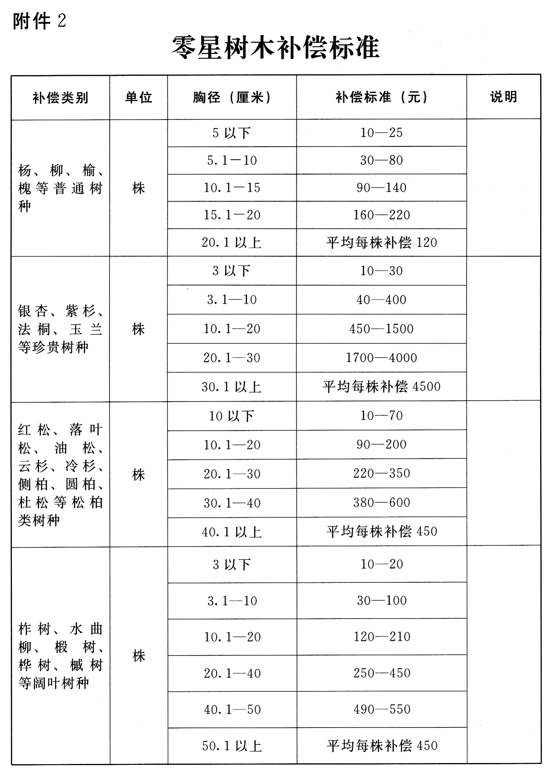 附件:1.一般林木补偿标准