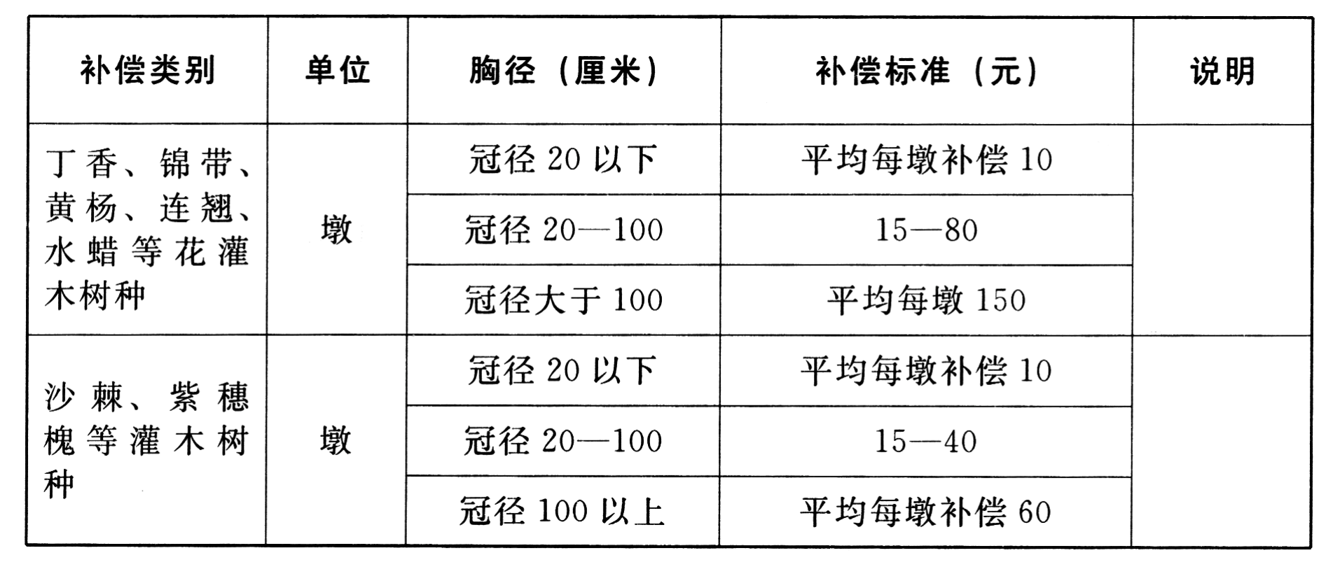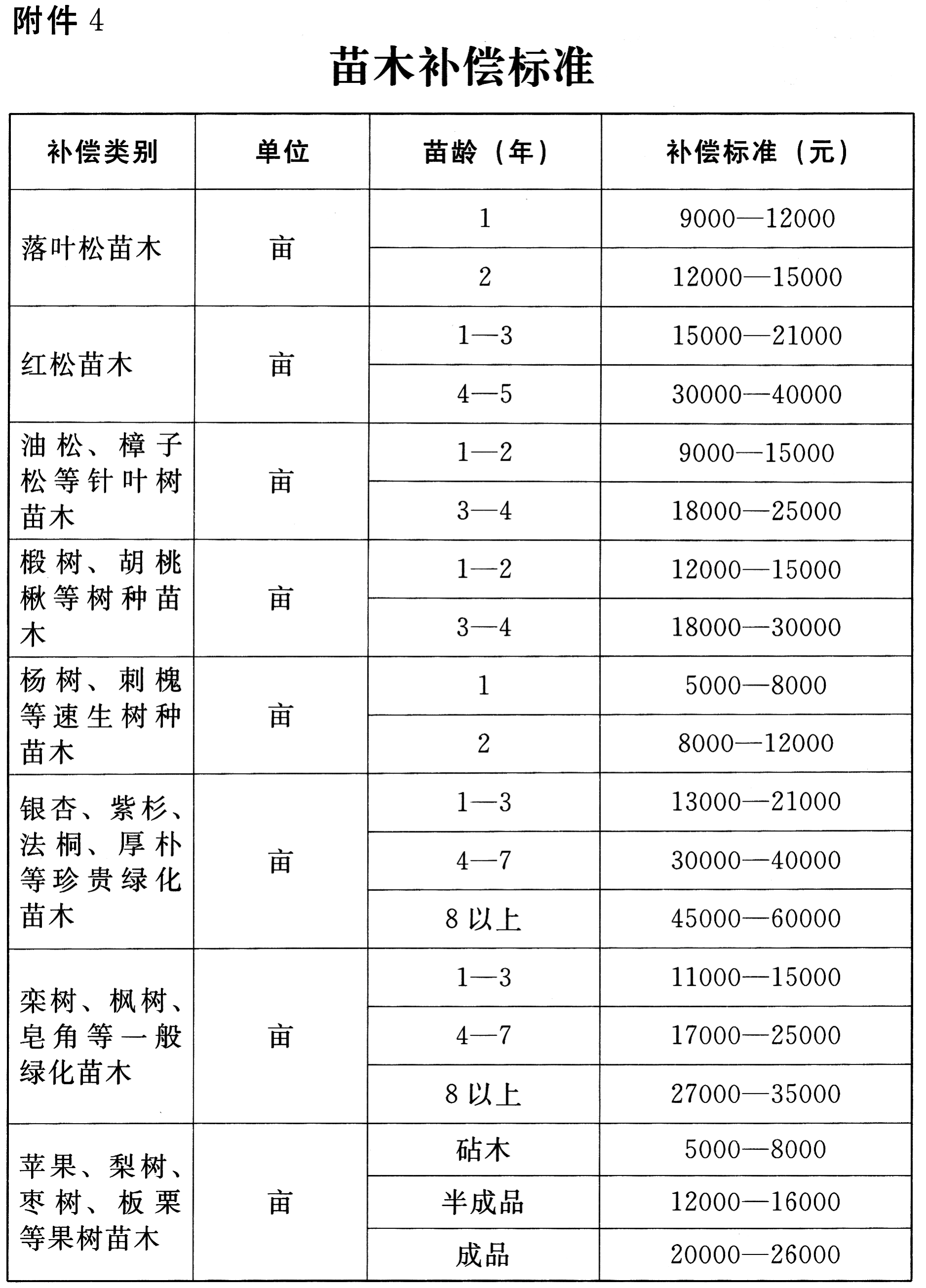 4.苗木补偿标准
