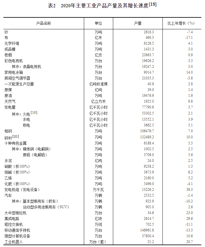 [18]2019年部分产品产量数据进行了核实调整,2020年产量增速按可比口径计算。
