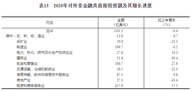 全年对外非金融类直接投资额7598亿元,比上年下降0.4%,折1102亿美元,下降0.4%。其中,对“一带一路”沿线国家非金融类直接投资额178亿美元,增长18.3%。