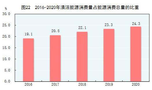 初步核算,全年能源消费总量49.8亿吨标准煤,比上年增长2.2%。煤炭消费量增长0.6%,原油消费量增长3.3%,天然气消费量增长7.2%,电力消费量增长3.1%。煤炭消费量占能源消费总量的56.8%,比上年下降0.9个百分点;天然气、水电、核电、风电等清洁能源消费量占能源消费总量的24.3%,上升1.0个百分点。重点耗能工业企业单位电石综合能耗下降2.1%,单位合成氨综合能耗上升0.3%,吨钢综合能耗下降0.3%,单位电解铝综合能耗下降1.0%,每千瓦时火力发电标准煤耗下降0.6%。全国万元国内生产总值二氧化碳排放下降1.0%。