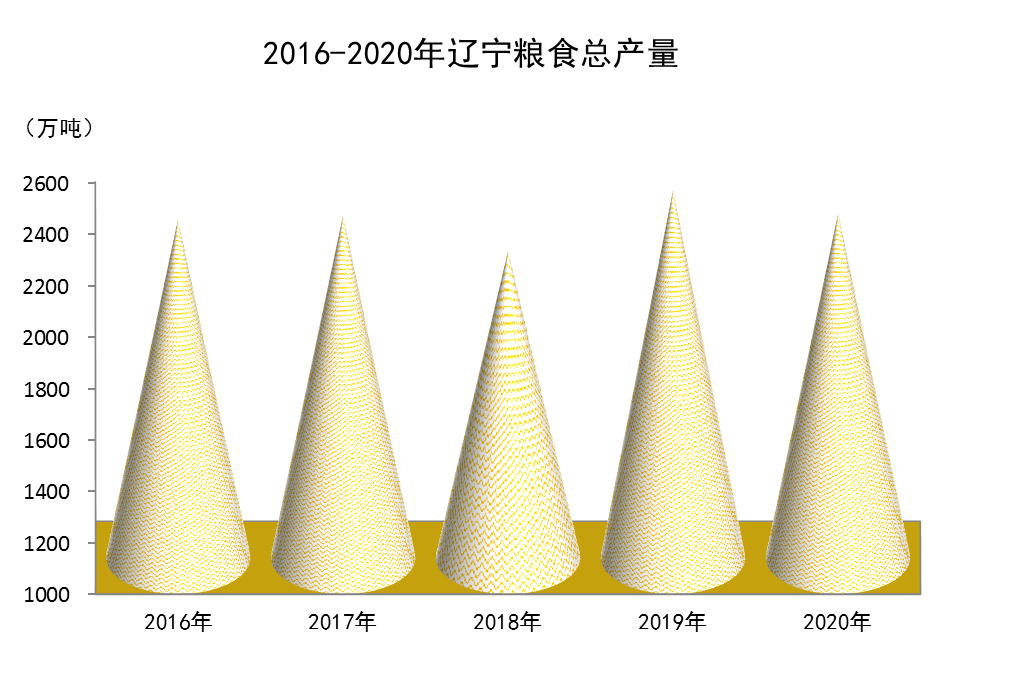 全年粮食总产量2338.8万吨。其中,水稻产量446.5万吨,玉米产量1793.9万吨,其他谷物产量41.4万吨,豆类产量25.6万吨。全年油料产量99.7万吨。全年蔬菜及食用菌产量1960.0万吨。全年水果产量851.3万吨。
