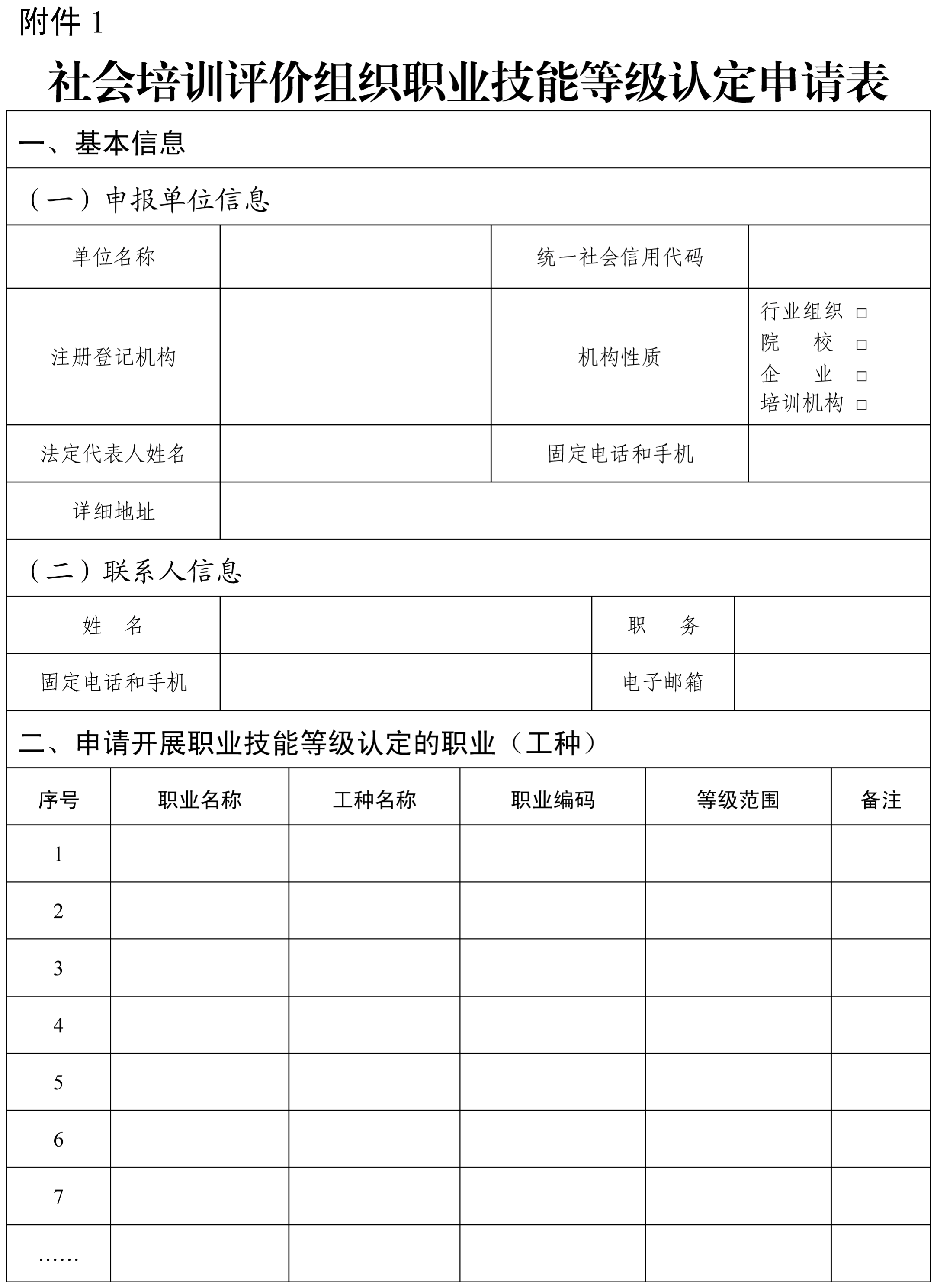 附件:1.社会培训评价组织职业技能等级认定申请表