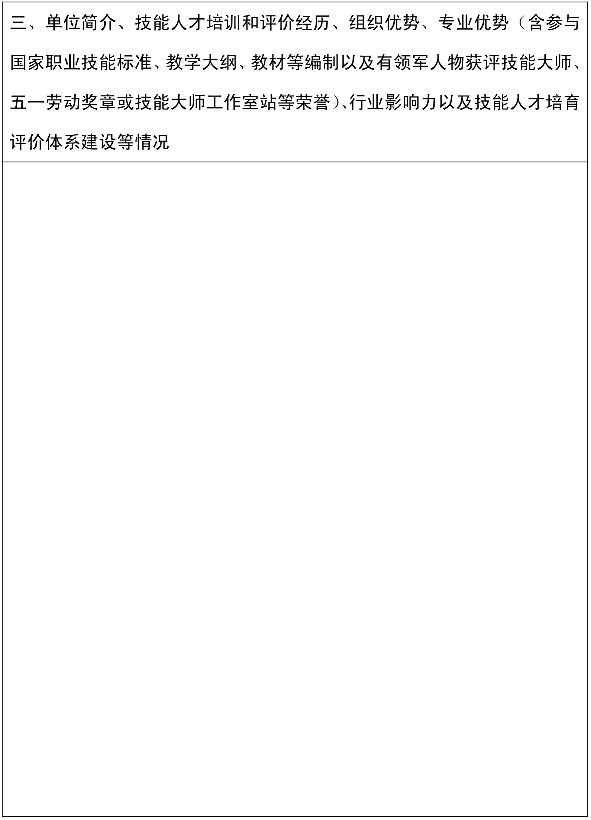 (二)在拟开展职业技能等级认定的职业领域具有一定影响力,在所申报职业(工种)方面有较丰富的考核评价经验。在产品研发、生产或公共服务领域具有先进性、典范性和凝聚力,且有教育培训、人才评价经验,可为职业技能等级认定和技能人才培养提供有力支撑,或者拥有职业技能鉴定资质,所申报的职业(工种)累计鉴定规模一般不少于2000人次。