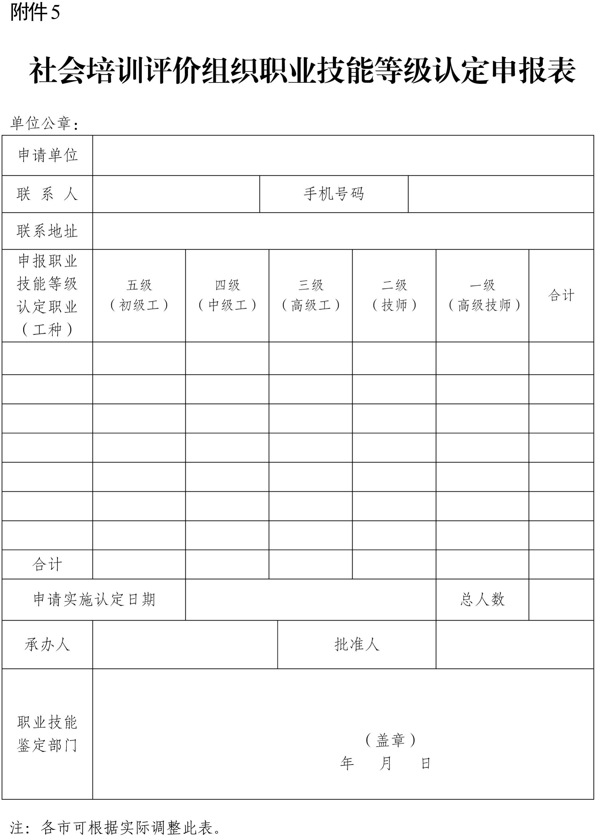 5.社会培训评价组织职业技能等级认定申报表