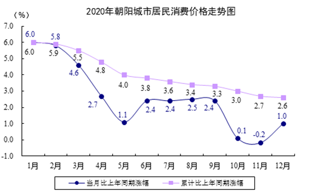 全年城市居民消费价格比上年上涨2.6%。分类别看,食品烟酒类价格上涨7.8%,衣着类价格下降0.6%,居住类价格下降0.6%,生活用品及服务类价格上涨0.6%,交通和通信类价格下降3.7%,教育文化和娱乐类价格上涨1.7%,医疗保健类价格上涨1.5%,其他用品和服务类价格上涨4.6%。