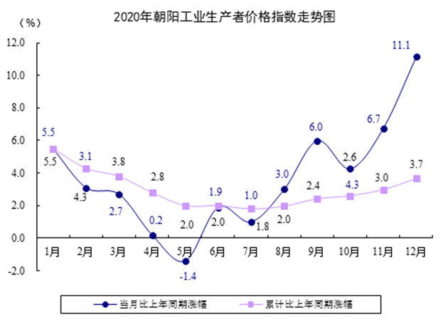 全年工业生产者出厂价格比上年上涨3.7%。其中,生产资料出厂价格上涨3.6%,生活资料出厂价格上涨3.7%;轻工业上涨4%,重工业上涨3.6%;初级产品上涨8%,中间产品上涨1.7%,最终产品上涨0.8%;采矿业上涨8%,制造业上涨1.7%,电力、热力、燃气及水生产和供应业下降0.2%。
