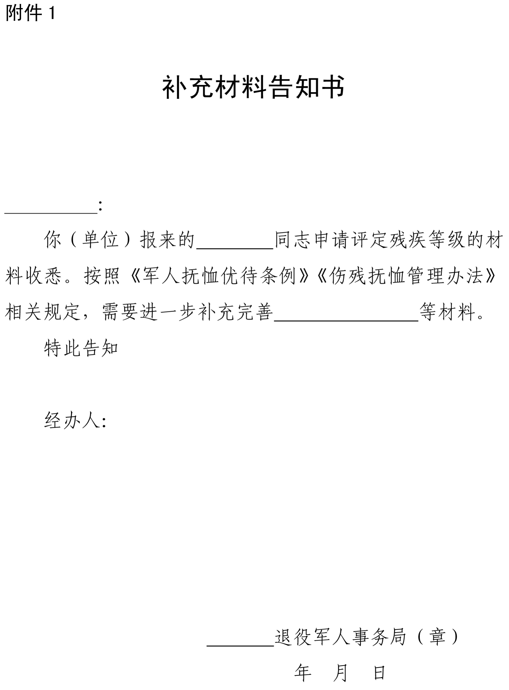第十条 县级退役军人事务部门对提交的申报材料进行核对。对材料不全或者材料不符合法定形式的应当以书面形式一次性告知申请人所在单位或申请人补充材料。
