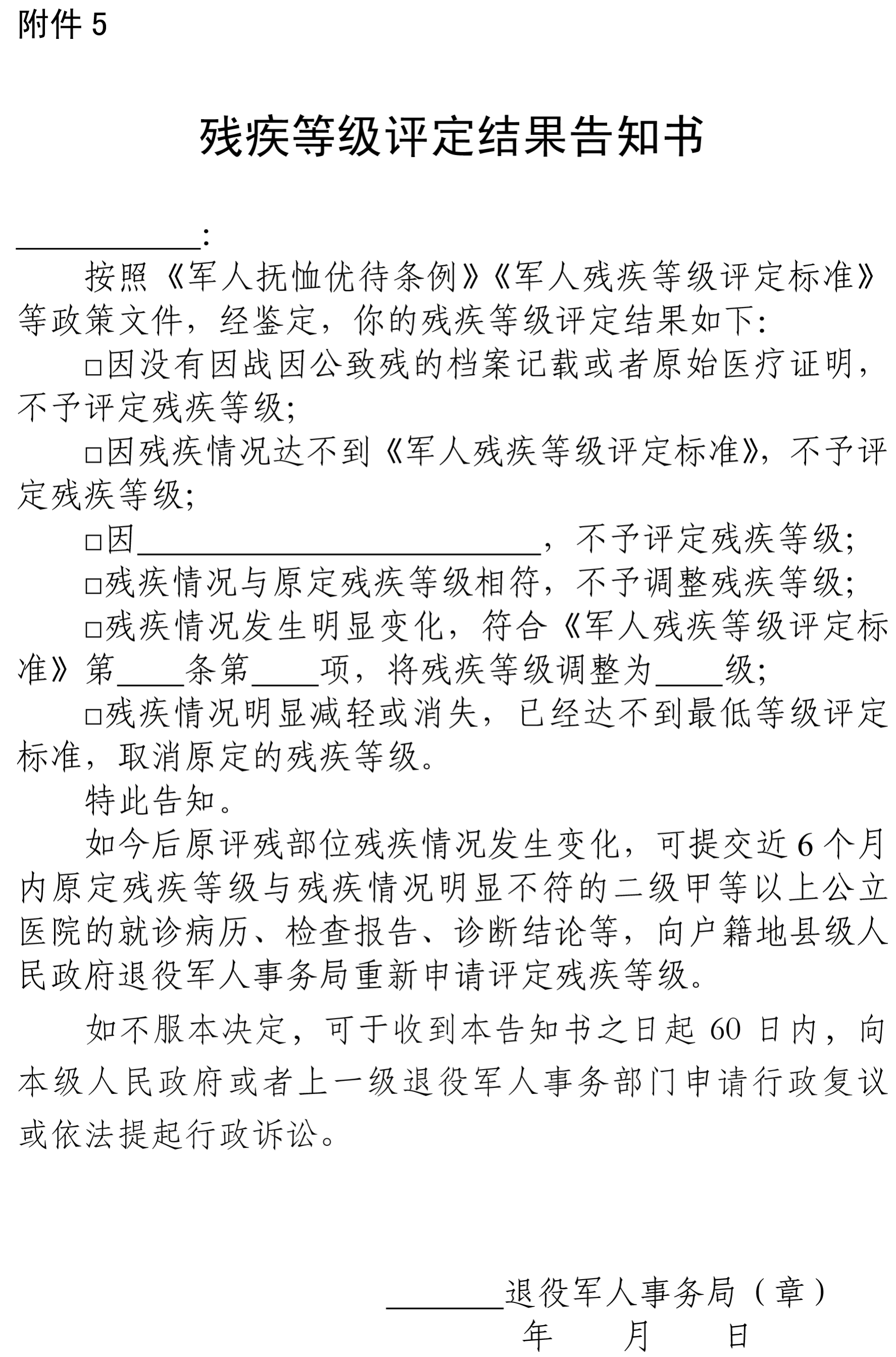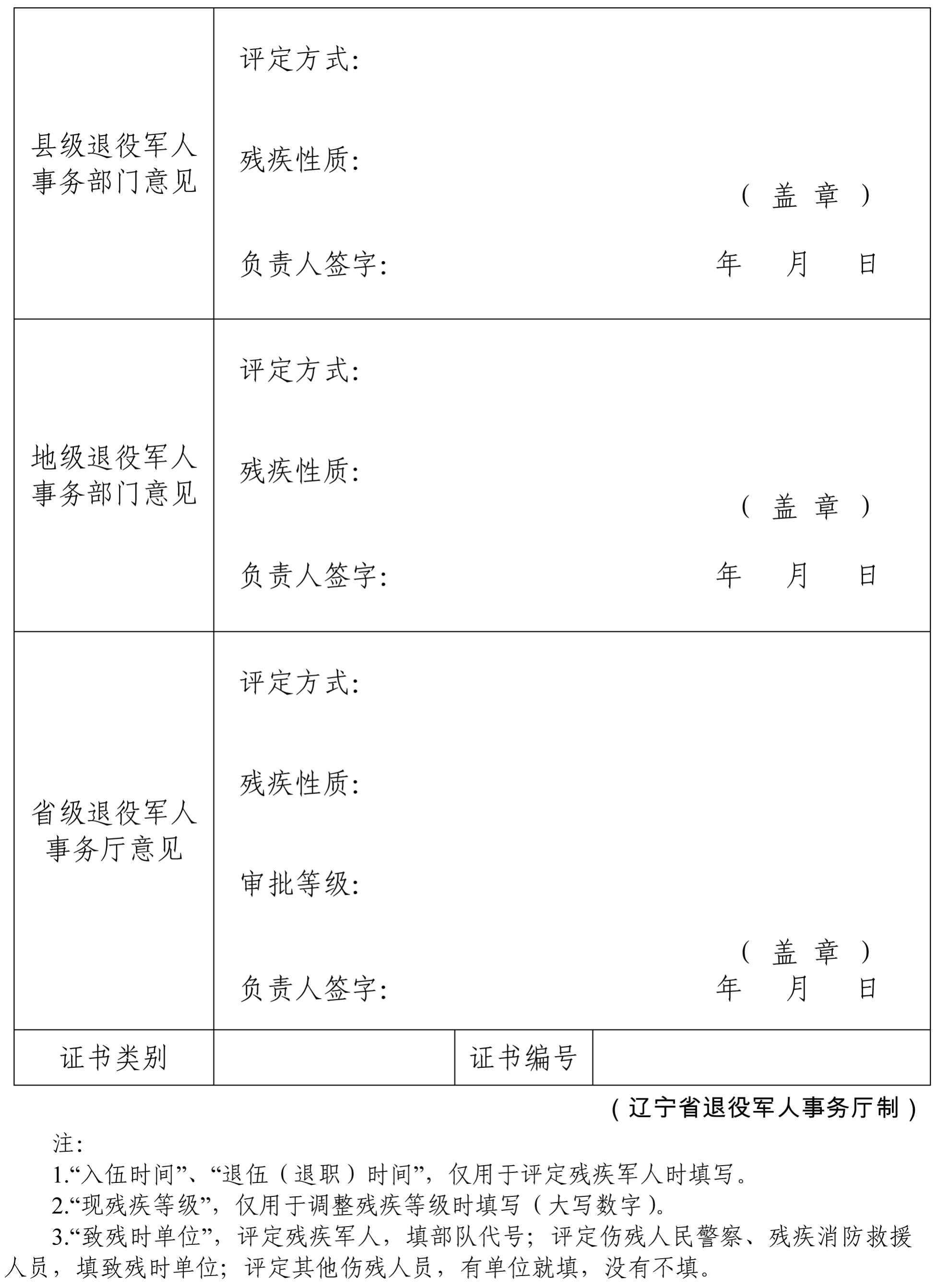 《残疾等级评定审批表》或《退役残疾军人移交地方换证审批表》由县级退役军人事务部门留存备查。