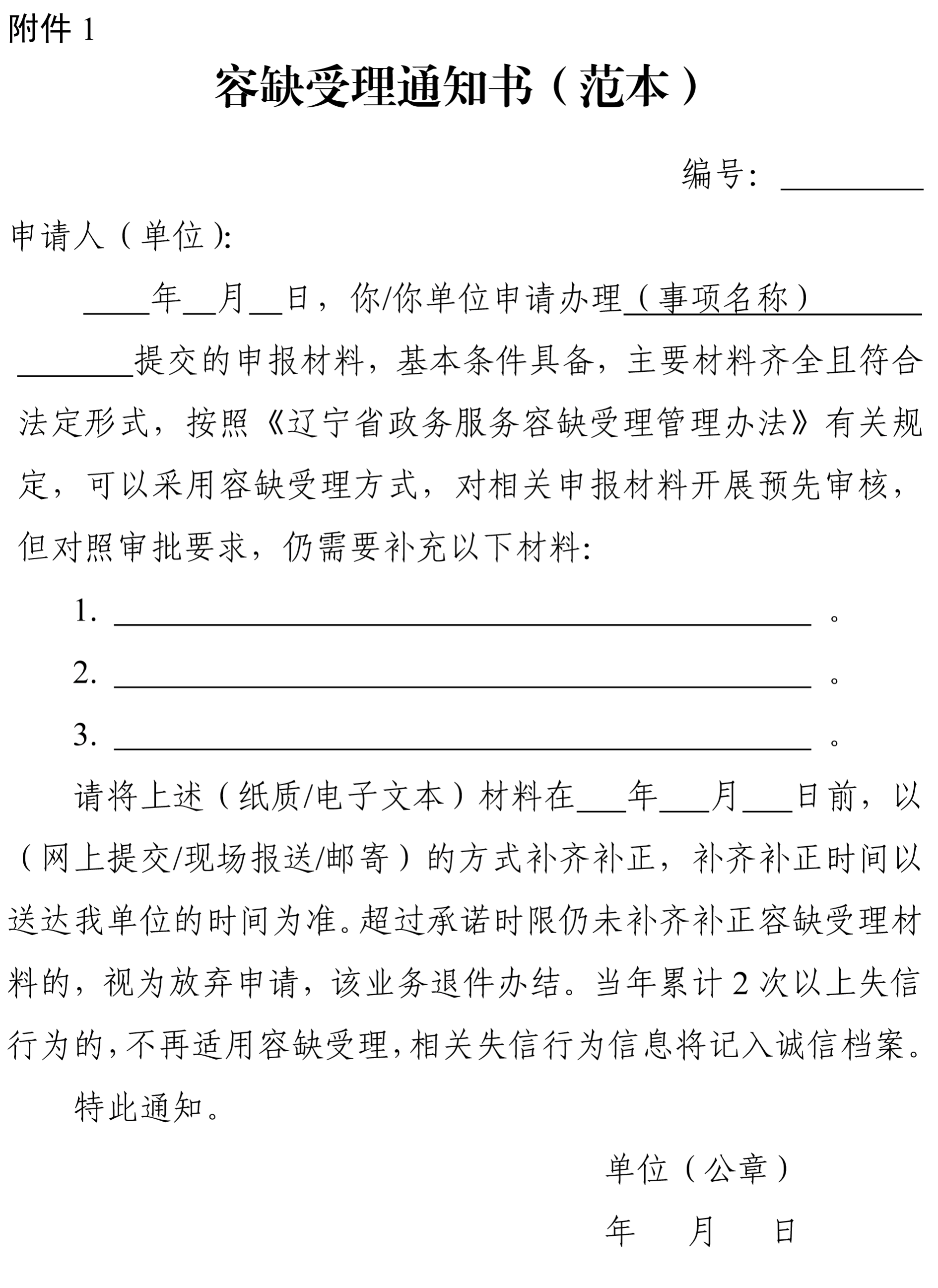 经省政府同意,现将《辽宁省政务服务容缺受理管理办法》印发给你们,请认真贯彻执行。