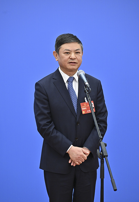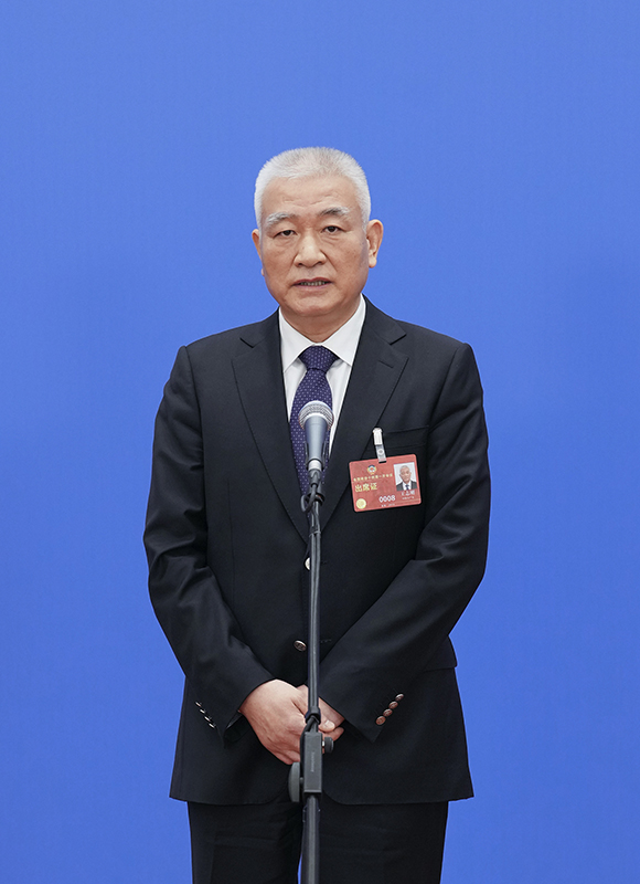 3月5日,第十四届全国人民代表大会第一次会议举行首场“部长通道”采访活动。这是工业和信息化部部长金壮龙接受媒体采访。