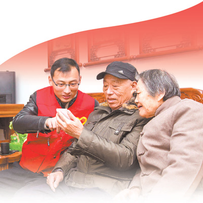| 2016年12月,江苏省泰兴市组织开展党员送温暖活动。图为青年党员在为泰盛新村的老人讲解手机电子支付方法。 |