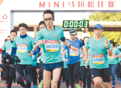 | 2020年11月7日,在北京奥林匹克森林公园,一场迷你马拉松赛正在举行。 |