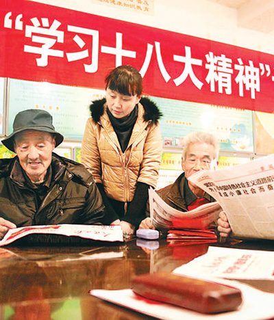 | 党的十八大召开后,河北省永清县后奕镇董相庄村,村民在工作人员辅导下,学习十八大精神。 |