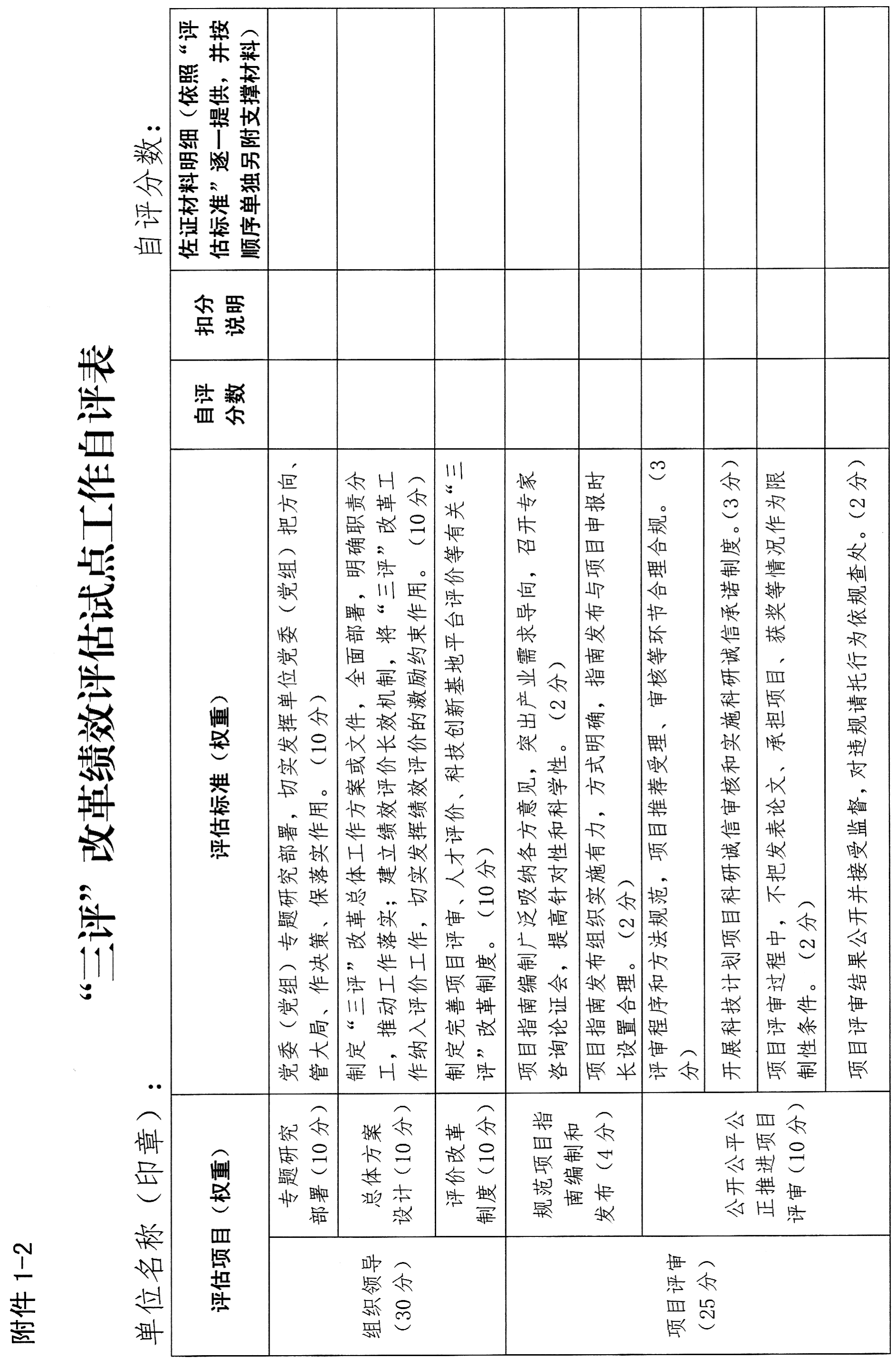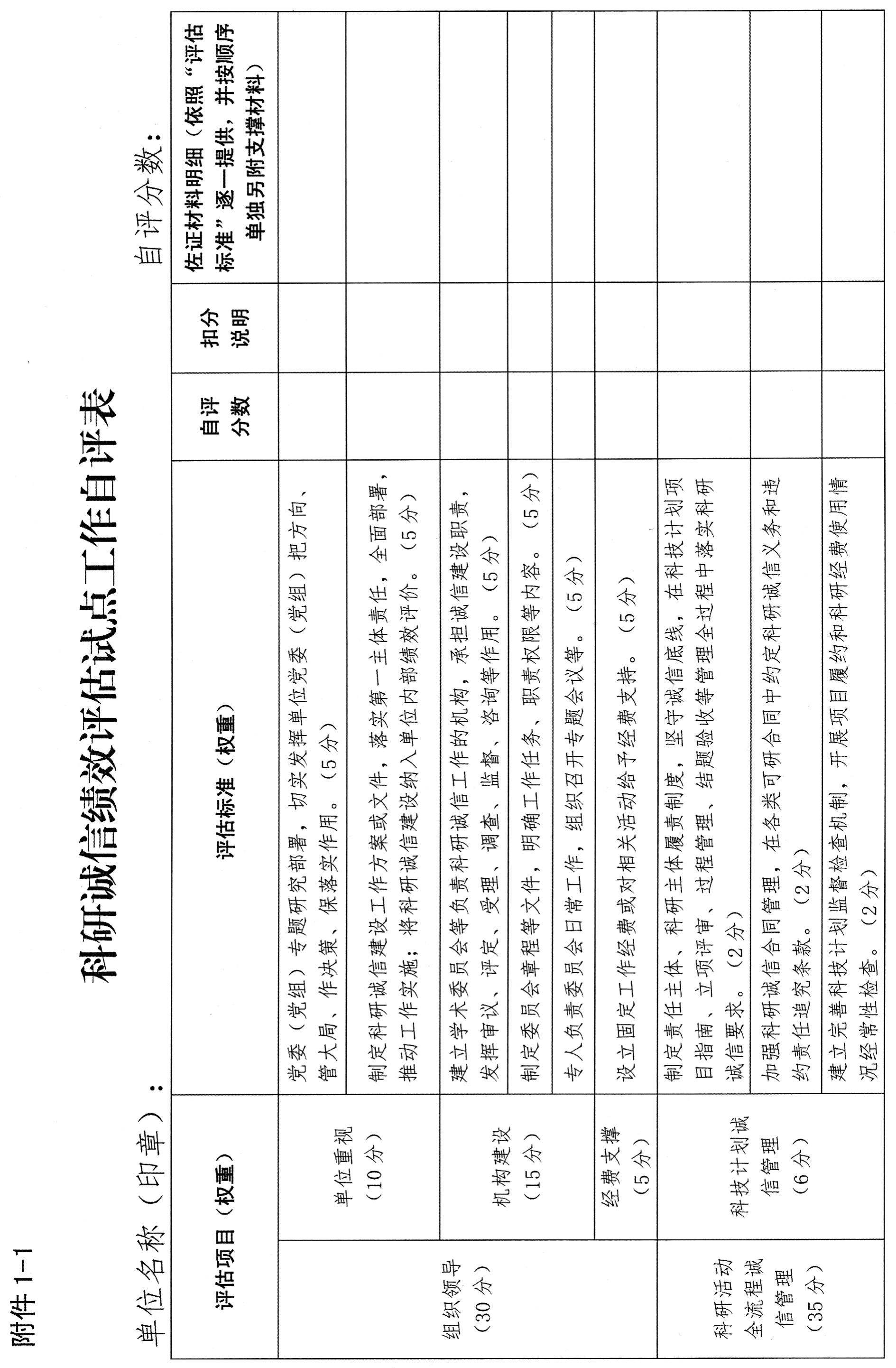 附件:1.科研诚信和“三评”改革绩效评估试点工作自评表