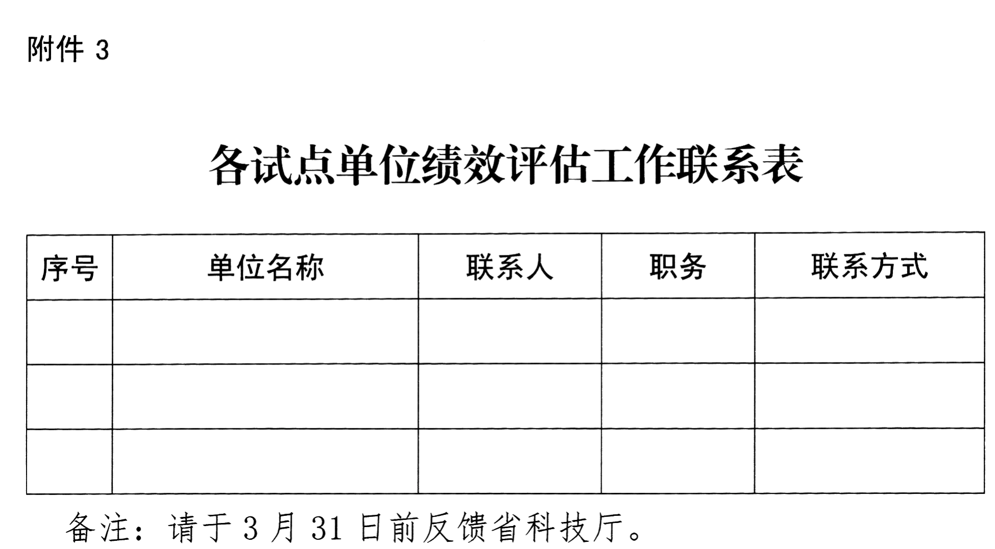 3.各试点受评单位绩效评估工作联系表