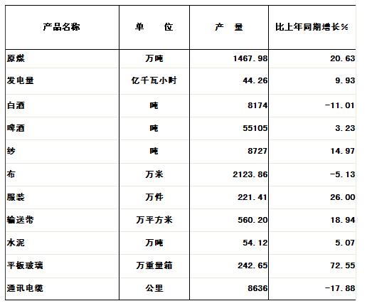 工业经济快速增长。全年全口径工业总产值121.2亿元,比上年增长26.7%。完成工业增加值29.2亿元,比上年增长19.6%。全部国有和年产品销售收入500万元及以上非国有工业企业(简称规模以上工业企业)共有179个,完成产值82.2亿元,比上年增长21.7%。规模以上工业企业完成增加值22.2亿元,比上年增长18.3%。在规模以上工业企业中,从经济类型看:国有及国有控股工业完成产值60.3亿元,增长11.8%,集体工业完成产值3.5亿元,增长2.7%;股份合作工业完成产值2.3亿元,增长41.0%;股份制工业完成产值12.7亿元,增长25.7%;外商及港澳台投资工业完成产值6.1亿元,增长87.0%;其它经济类型工业完成产值5.2亿元,增长35.3%。从轻重工业看:轻工业完成产值17.7亿元,增长19.0%;重工业完成产值64.5亿元,增长22.9%。