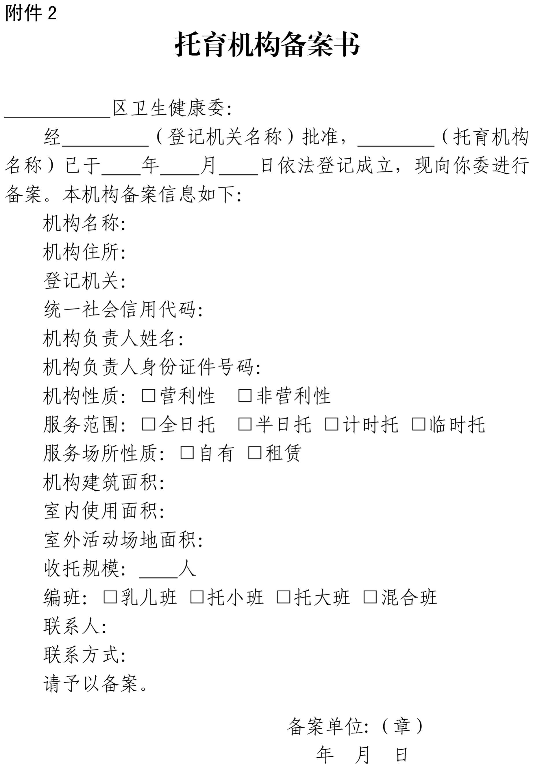2.托育机构备案书
