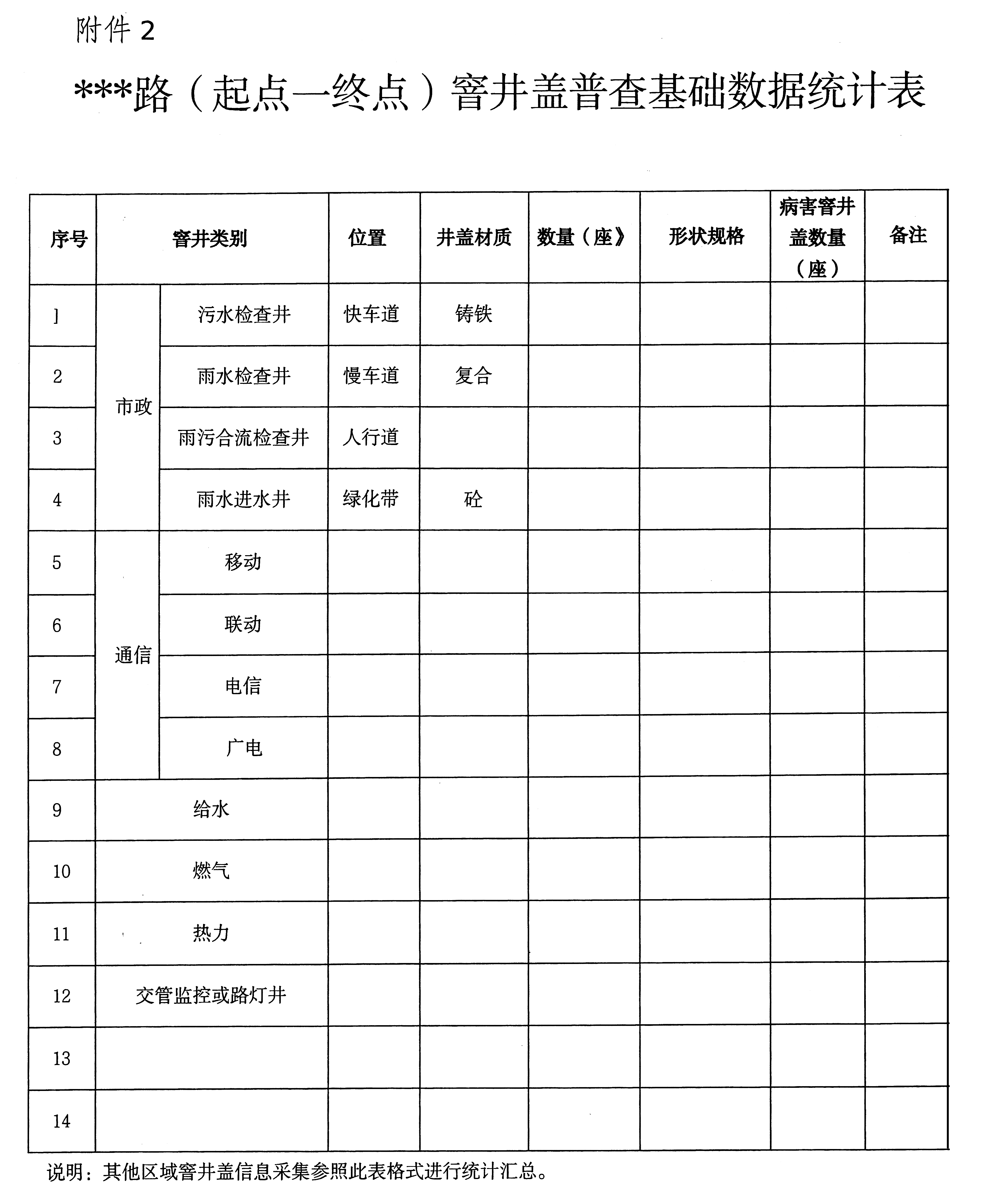 2.**路(起点-终点)窨井盖普查基础数据统计表