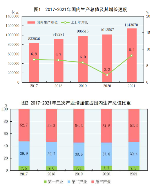 [2]国内生产总值、三次产业及相关行业增加值、地区生产总值、人均国内生产总值和国民总收入绝对数按现价计算,增长速度按不变价格计算。