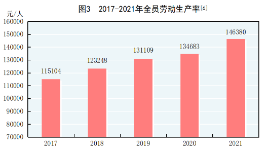 [5]全员劳动生产率为国内生产总值(按2020年价格计算)与全部就业人员的比率,根据第七次全国人口普查结果对历史数据进行了修订。
