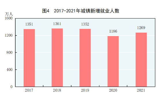年末全国就业人员74652万人,其中城镇就业人员46773万人,占全国就业人员比重为62.7%,比上年末上升1.1个百分点。全年城镇新增就业1269万人,比上年多增83万人。全年全国城镇调查失业率平均值为5.1%。年末全国城镇调查失业率为5.1%,城镇登记失业率为3.96%。全国农民工[11]总量29251万人,比上年增长2.4%。其中,外出农民工17172万人,增长1.3%;本地农民工12079万人,增长4.1%。