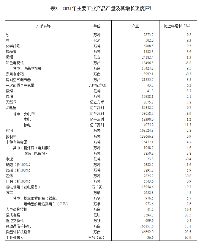 [23]2020年部分产品产量数据进行了核实调整,2021年产量增速按可比口径计算。