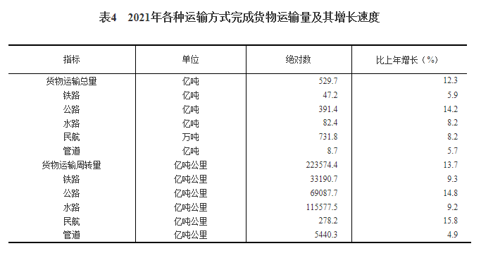 [29]货物运输总量及周转量包括铁路、公路、水路、民航和管道五种运输方式完成量,2021年增速按可比口径计算。
