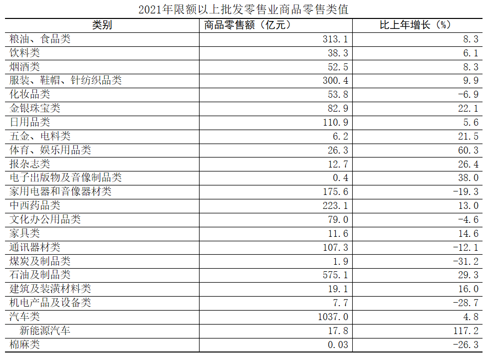全年社会消费品零售总额9783.9亿元,比上年增长9.2%。其中,限额以上单位[5]消费品零售额3494.4亿元,增长8.5%。