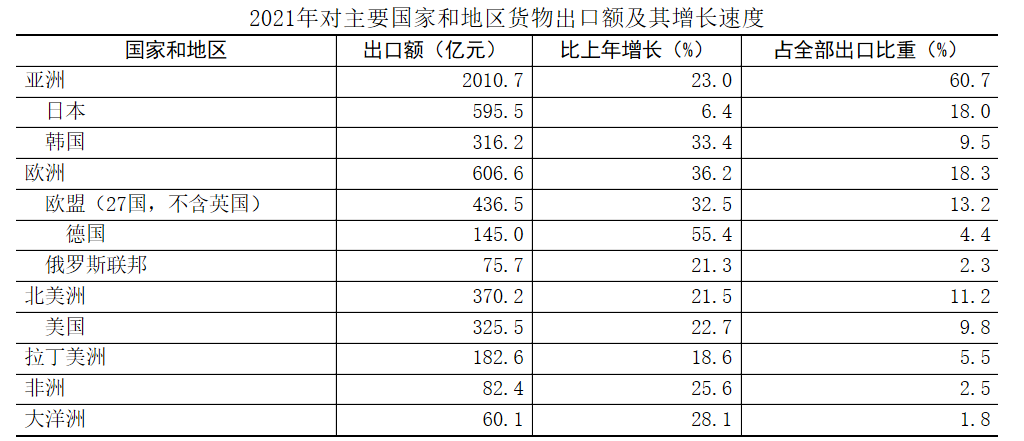全年进出口总额7724.0亿元,比上年增长17.6%。其中,出口总额3312.6亿元,增长24.9%;进口总额4411.4亿元,增长12.6%。
