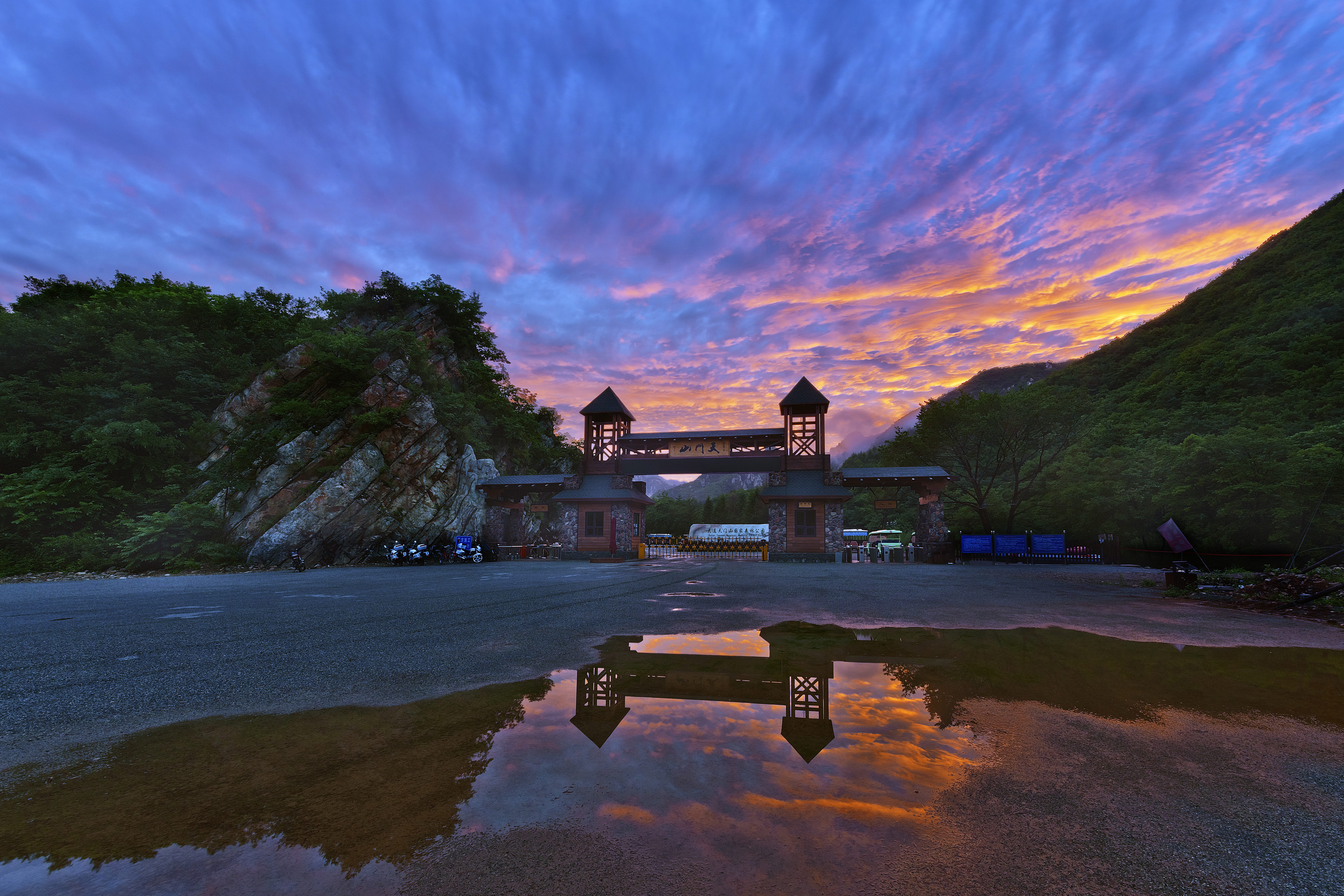 大连天门山国家森林公园是国家AAAA级旅游景区,地处庄河市以北66公里,距大连市220公里,核心景区占地面积40平方公里,与盖州市、营口、岫岩交界,地理交通十分便捷。景区内共分为五大观景区和漂流区,拥有峰、石、洞、谷、漂流等奇观异景,造就了著名的天门峰著名景点30余处,海拔800米以上的山峰有36座,最高峰是逗云峰海拔926米。向世人展示着天门山的雄、险、峻、奇、秀,千山万壑无不拥有层峦叠嶂的神韵。天门峡漂流全长10公里左右,自然落差共计91米,有大约一半的河道水流急,落差大,全程跌宕起伏,九曲十弯,漂流2-3小时的时间;水质丰富,水量清澈,所以被游客称为“矿泉水漂流”。漂流之前可以体验电音派对、DJ喊麦、北方泼水节、舞蹈演员表演,洒水车、水炮、水枪,工作人员与游客一起互动,氛围感直接拉满。