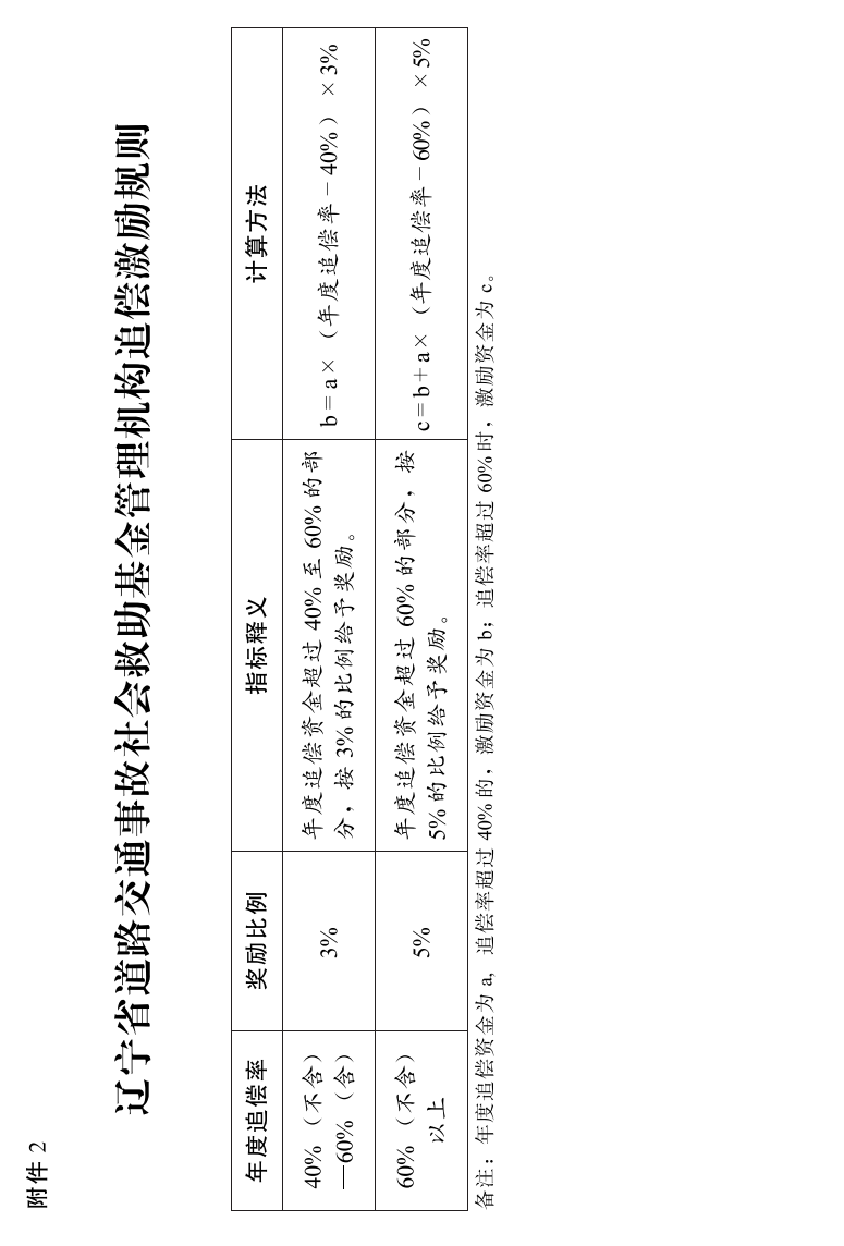 2.辽宁省道路交通事故社会救助基金管理机构追偿激励规则