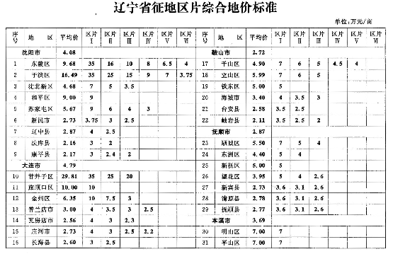 附件:辽宁省征地区片综合地价标准