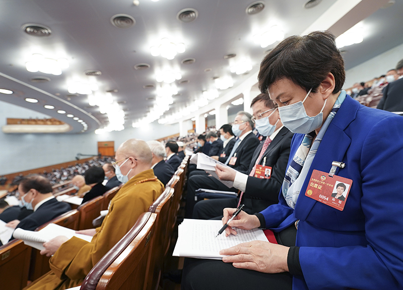 3月7日,十四届全国人大一次会议在北京人民大会堂举行第二次全体会议。这是代表们在认真听会。