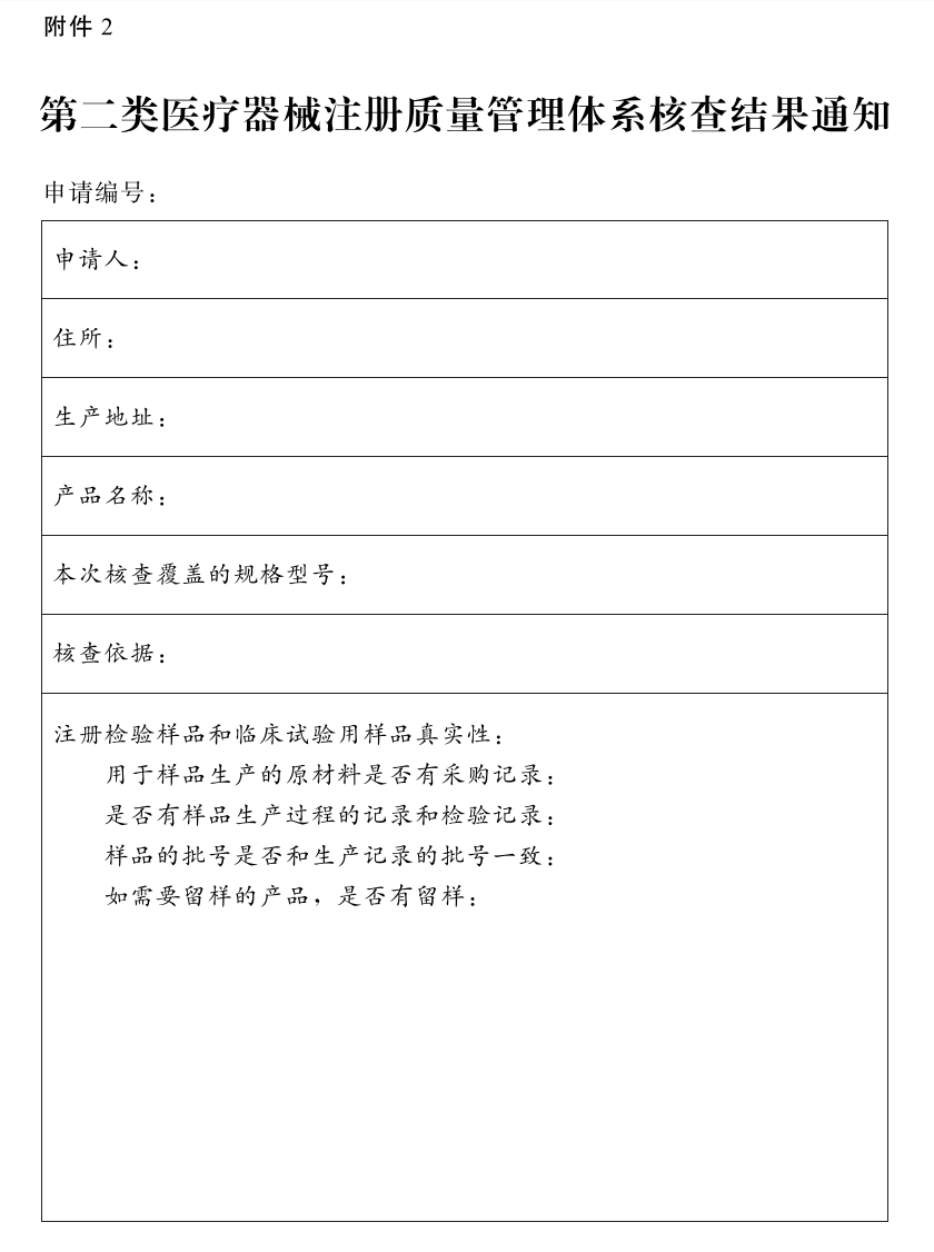 2.第二类医疗器械注册质量管理体系核查结果通知