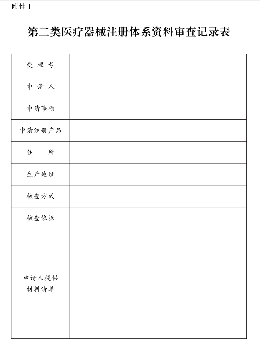 附件:1.第二类医疗器械注册体系资料审查记录表