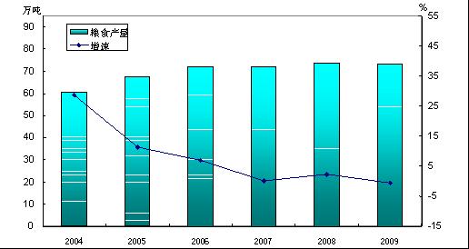 图2 2004-2009年营口市粮食产量及其增长速度