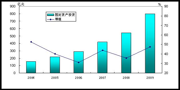 图4 2004-2009年固定资产投资及其增长速度