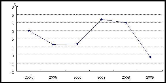 图7 2004-2009年营口市居民消费价格涨跌幅度