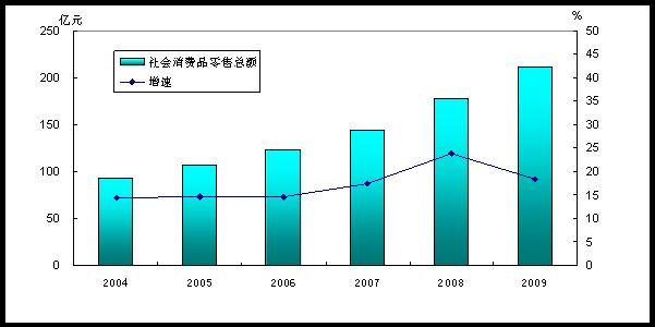 图5 2004-2009年社会消费品零售总额及其增长速度