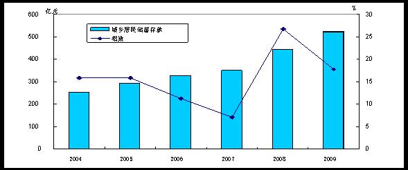 图8 2004-2009年营口市城乡居民储蓄存款余额及增长速度