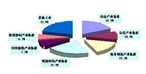 全年规模以上工业中,六大产业集群成为拉动工业增长的主要动力,占规模以上工业增加值的八成。冶金产业集群增加值比上年增长65.6%,占规模以上工业增加值的比重为18.3%;石化产业集群增加值比上年增长12.3%,占规模以上工业增加值的比重为10.3%;装备制造产业集群增加值比上年增长29.3%,占规模以上工业增加值的比重为15.3%;镁质材料产业集群增加值比上年增长12.6%,占规模以上工业增加值的比重为21.9%;纺织服装产业集群增加值比上年增长5.9%,占规模以上工业增加值的比重为7.5%;新型建材产业集群增加值比上年增长14.2%,占规模以上工业增加值的比重为6.3%。食品饮料及烟草业增加值比上年增长10.7%,占规模以上工业增加值的比重为6.1%;电力、煤气和水的生产供应业增加值比上年下降12.3%,占规模以上工业增加值的比重为2.5%。