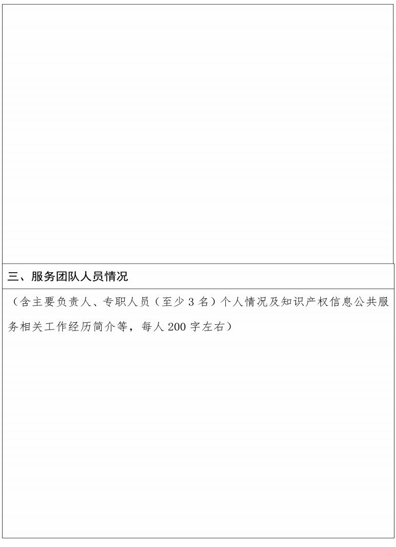 (一)拥有专业知识产权信息服务工作团队,配备3名及以上具有一定经验的专职人员及若干兼职人员。